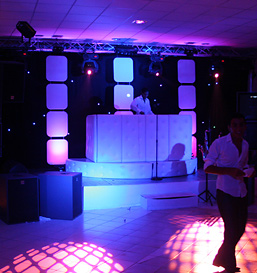 déco ballon, tissus drapés, ainsi qu'un équipement hight tech dernière génération en terme d'effet lumière.